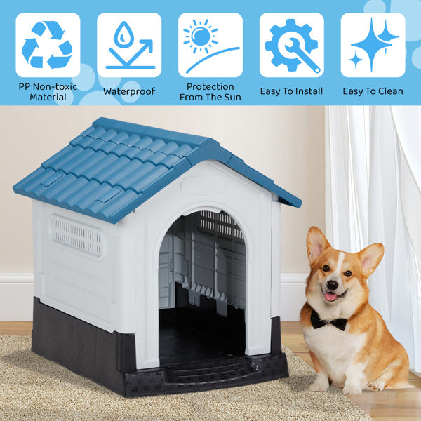 Provide your furry friend with a cozy, weather-resistant haven with this plastic dog house. Designed for both indoor and outdoor use, this doghouse features an elevated floor to keep your pet dry and comfortable, while integrated air vents ensure optimal airflow. The water-resistant, sloping roof prevents rain from seeping in, and the sturdy PVC construction promises long-lasting durability. Easy to assemble and maintain, this puppy shelter is the perfect retreat for your furry friend.